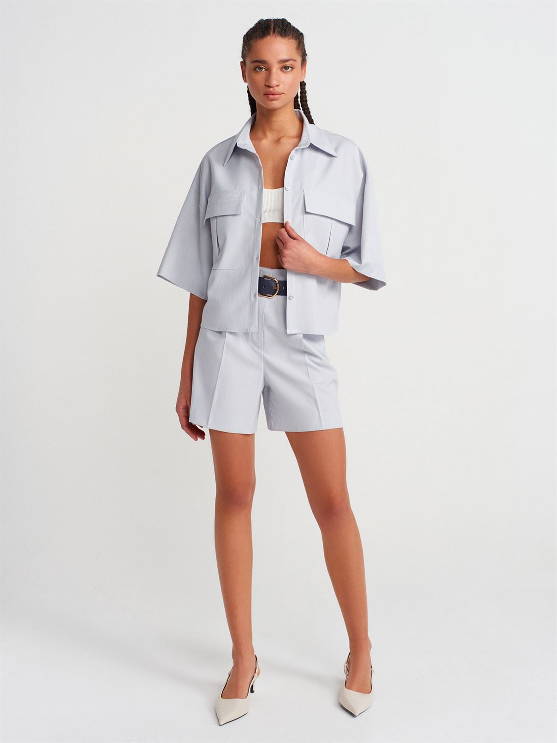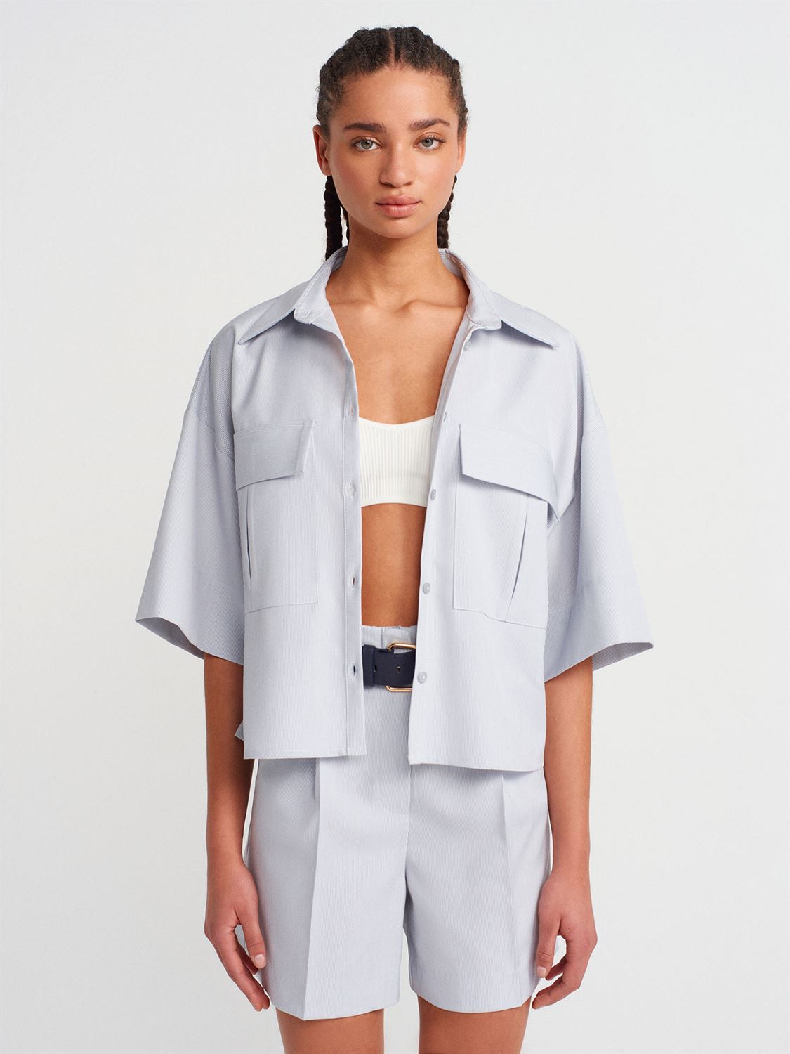 DİLVİN OVERSIZE CEPLİ GÖMLEK MAVİ