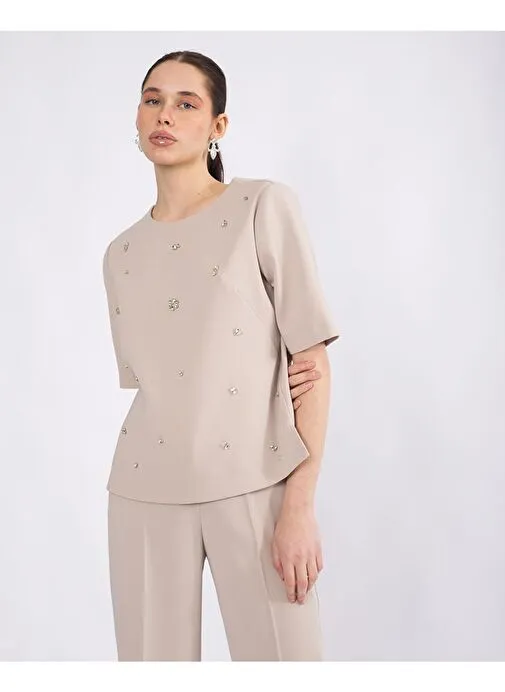 LADY GINA YUVARLAK YAK ÖNÜ TAŞ İŞLEMELİ TAKIM