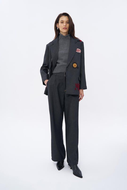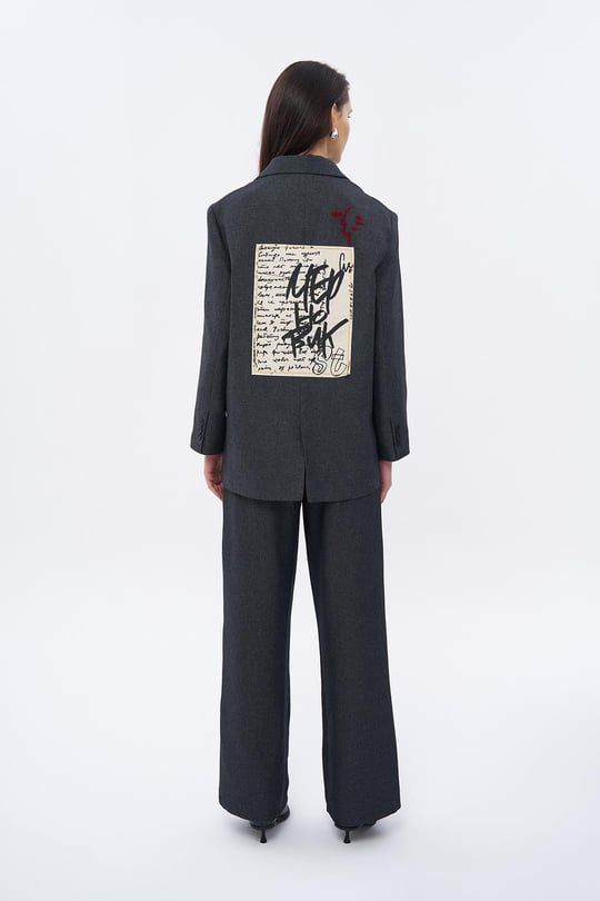 QUZU NAKIŞ DETAYLI ANTRASİT CEKET