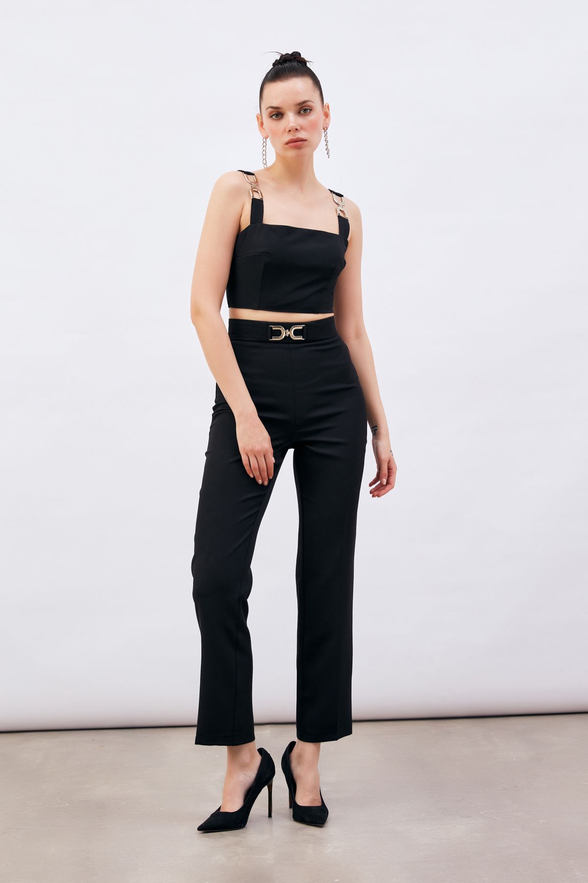 SATEEN AKSESUAR DETAYLI SİYAH PANTLON