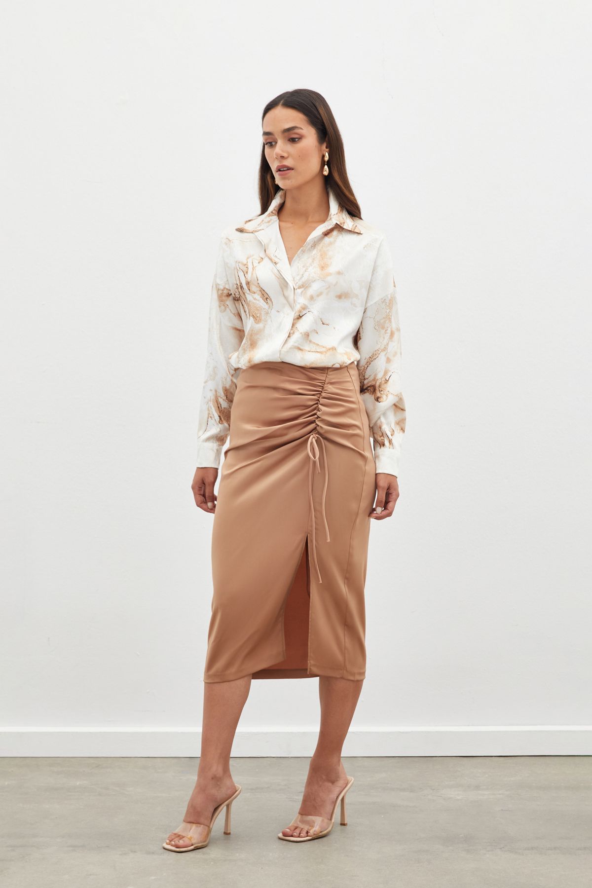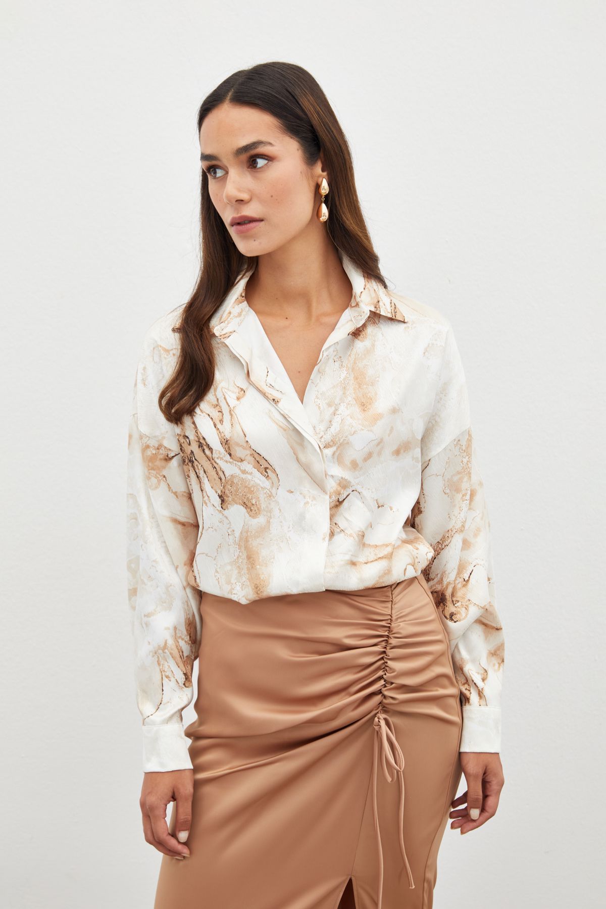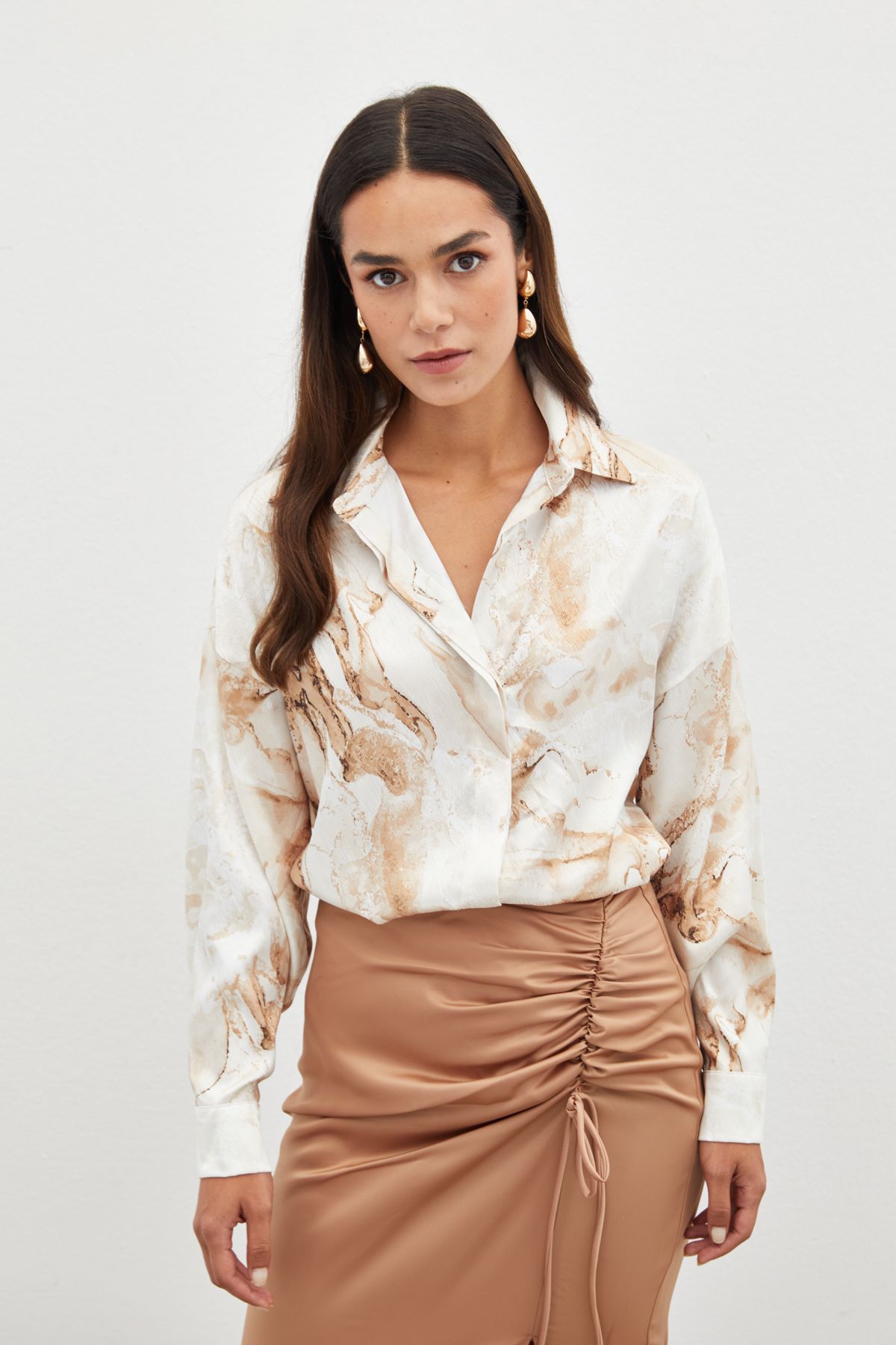 SATEEN DESENLİ SALAŞ GÖMLEK BEJ RENK GÖMLEK
